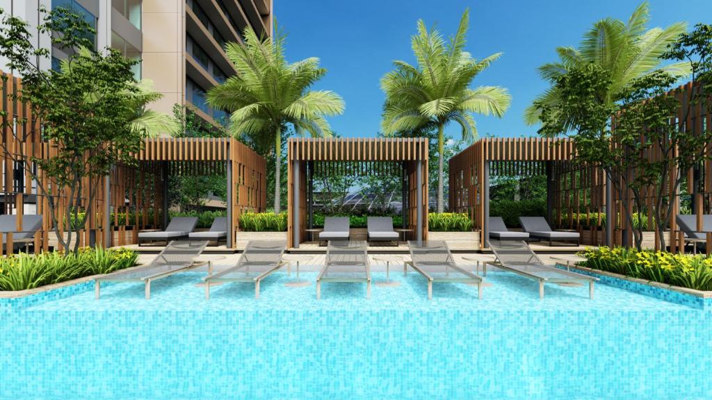 Le Sheraton Johor Bahru aligne 345 chambres et suites, dont des configurations familiales dédiées (chambre enfants avec lits superposés), un Sheraton Club avec vues panoramiques, et une offre F&B conçue pour couvrir l’ensemble des moments de la journée : Daily Social (cuisine internationale, service continu), &More by Sheraton (café-bar-market), Soo Noodles (noodle bar et service tardif) et Unspoken Bar (speakeasy). L’axe bien-être s’appuie sur un centre de fitness ouvert 24h/24 avec salle de vapeur, une piscine extérieure et ce qui est présenté comme la plus grande piscine enfants de Johor Bahru – un différenciant clair pour la clientèle familiale. Le tout se connecte directement au SKS City Mall, ajoutant une couche retail et divertissement à l’expérience sur place.