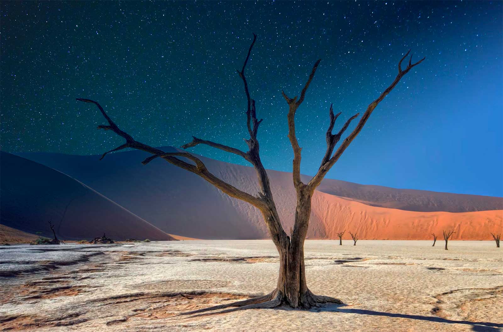 Le territoire est majoritairement désertique ou semi-aride. Le Namib Desert, considéré comme l’un des plus anciens déserts du globe, s’étire sur plus de 2 000 km le long de l’Atlantique. À l’est, le Kalahari dessine un autre espace de faible occupation humaine. Entre les deux, des plateaux, des parcs nationaux et des zones communautaires où l’activité humaine reste limitée.