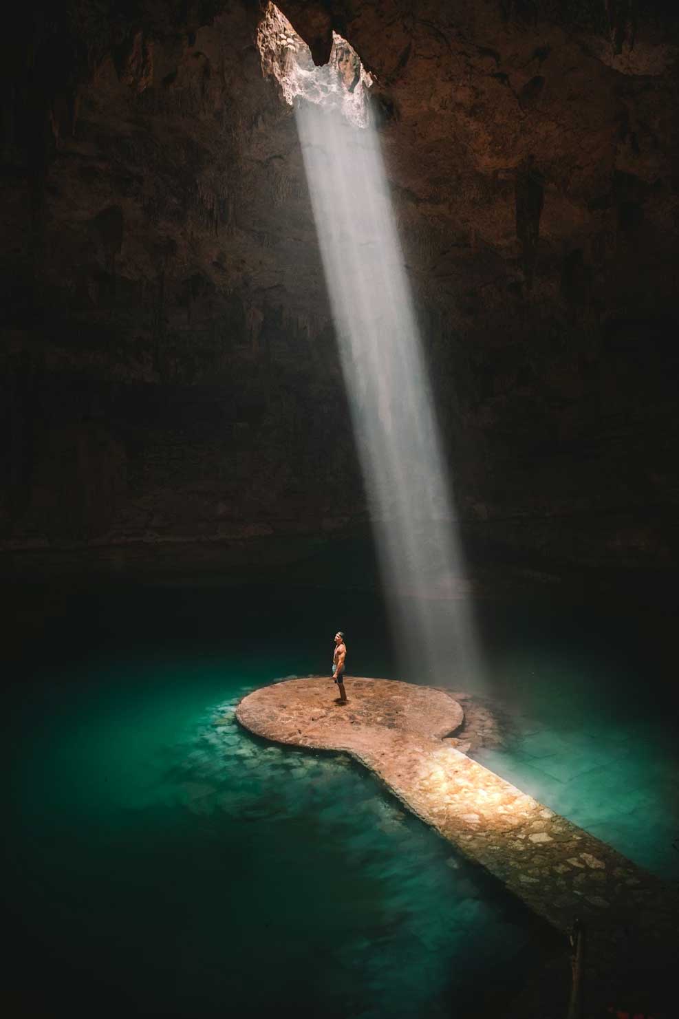 À 4 km du centre, ce cenote est facilement accessible. L’eau est claire. Les formations calcaires sont visibles depuis les pontons. L’entrée coûte 18 € (340 MXN). Un masque et un tuba suffisent pour observer poissons et tortues. Le site ferme en milieu d’après-midi. - Le cenote Calavera